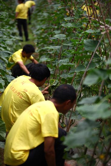 碧绿的黄瓜挂满了棚架、身着亮黄色短袖T恤的人们正在大棚里辛勤劳作……贵州省水城县发耳乡有这样一个果蔬合作社,与其他合作社不同的是,这里的社员除了普通老百姓外,还有21名特殊人员,其中包括了社区戒毒社区康复人员、劳教人员等。近日,记者走访了这个特殊的合作社,切实感受到了合作社给社员们带来的实惠。