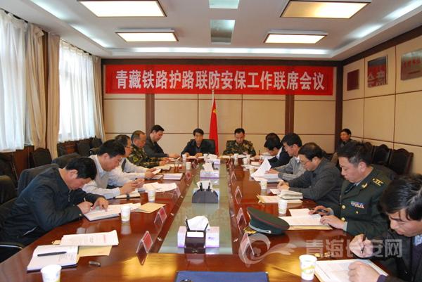 2013年3月8日,青海省综治委在西宁召开了青藏铁路护路联防工作联席会议。青海省综治委铁路护路联防领导小组副组长、省委政法委副书记庞顺泽,青藏铁路公司党委副书记朱华新、武警青海总队副参谋长石华杰及青藏兵站部、西宁市、海东地区综治办、护路办、青藏铁路公安局等相关单位20余名负责人参加了会议。会议听取了各单位近期护路联防工作开展情况,通报了近期全省铁路安全运营面临的隐患及涉路案(事)件。