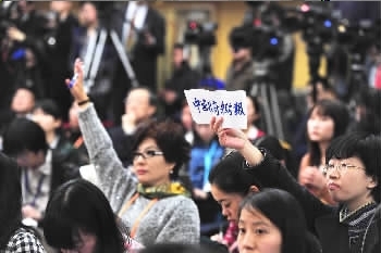 每次新闻发布会、记者会上,新闻大战比拼的就是提问的机会。13日上午的记者会由于内容更加受社会关注,各媒体的记者都不甘落后,使出浑身解数。