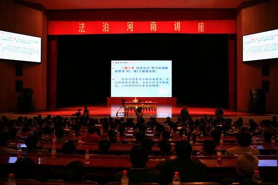 4月19日下午,由河南省委政法委组织开展的“法治河南”系列讲座活动首场讲座在河南省人民会堂开讲。