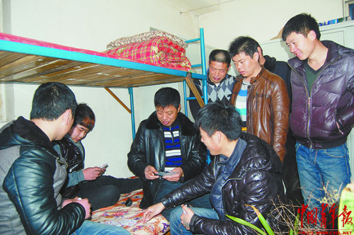 塔湾车行老板、“大哥”张立祥(左三)在回归人员宿舍陪大家打牌。他和姐姐张立艳经常故意输些钱给那些年轻的回归人员,让他们高兴高兴,以防止他们外出“轧坏道”。