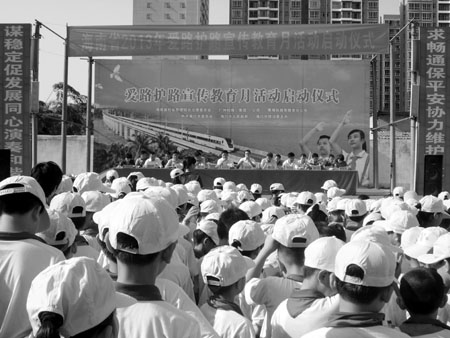 为进一步加强全省爱路护路工作宣传,5月15日上午8点,海南省社会管理综治委员会及相关单位在海口市龙华区山高小学举行“爱路护路宣传教育月”启动仪式。省综治办副主任、省综治委护路护线联防专项组副组长庄才德等相关领导出席,山高小学2000多名师生也参加了活动。