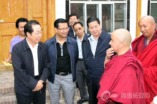 8月6日,青海省委常委、政法委书记张光荣在省委政法委常务副书记高煜、省维稳办专职副主任王和中、省综治办专职副主任赵学章等同志的陪同下,深入黄南州尖扎县拉茂德乾寺调研,详细了解该寺僧众的思想动态和生活状况,以及驻寺工作组的工作开展情况,强调要加强寺院社会管理,夯实藏区稳定根基。