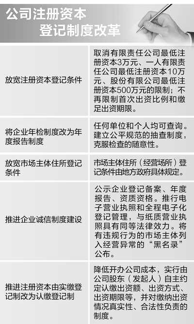 亮点一:简政放权 着眼培育新兴生产力发展 注册资本登记制度改革的目的,是为了进一步简政放权,构建公平竞争的市场环境,促进小微企业特别是创新型企业成长,推动新兴生产力发展。系列措施不仅顺应广大市场主体的热切期盼,而且符合新技术、新产业、新业态等新兴生产力发展的要求,有利于建设服务型政府,减少对市场的微观干预,保障劳动创业权利,营造良好营商环境,创造更多就业机会,使人民群众在深化改革、不断解放和发展生产力中更多受益。 | ||||