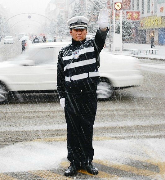 就在这个路口,加格达奇区公安局交警大队民警牟清元用标准的手势指挥交通,如城市雕塑一般,展示着“高寒禁区”人民不屈不挠的品格。