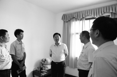 娄底中院院长肖新平(左三)经常与爱好学术研究的青年法官交流,关心他们的学习生活情况。刘向伟 摄