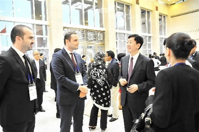 7月15日,在最高检机关举行的欢迎会上,曹建明还与参加研讨班的各位代表进行了广泛交流。