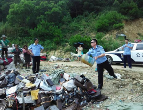 8月25日上午,长乐市公安局联合工商部门在长乐市里仁工业区垃圾处理中心集中销毁200多万假冒注册商标的商品。