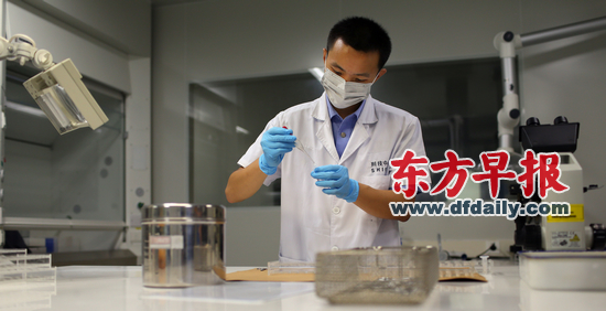 9月2日,一名警员正在上海刑侦总队生物物证检验实验室进行DNA预处理。