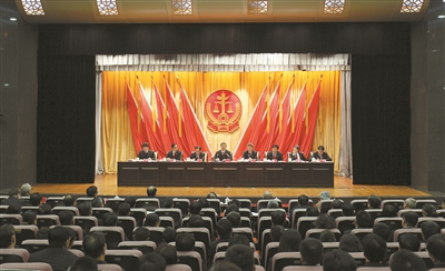 图为最高人民法院学习贯彻党的十八届四中全会精神大会会议现场。孙若丰 摄