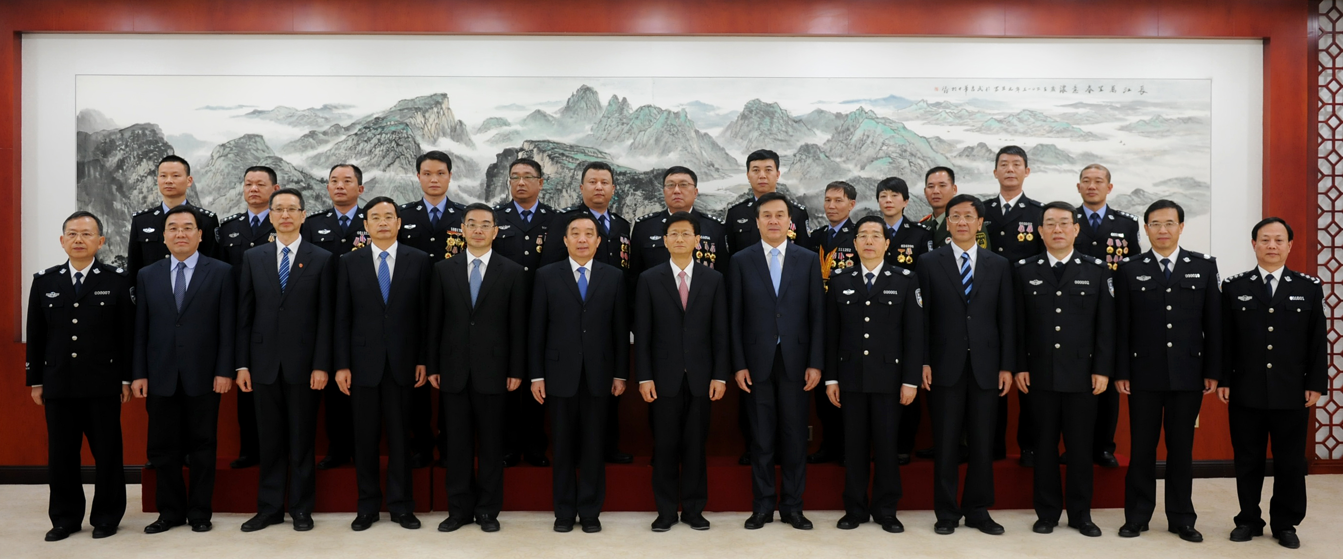 中央书记处书记、国务委员兼国务院秘书长杨晶,全国人大常委会副委员长兼秘书长王晨,最高人民法院院长周强,最高人民检察院检察长曹建明,中央政法委秘书长汪永清,湖北省委书记李鸿忠、省长王国生,中央电视台台长胡占凡参加会见。