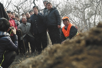 12月3日,聂树斌的父母及多名亲友来到聂树斌的坟头为他烧纸。新京报记者 彭子洋 摄