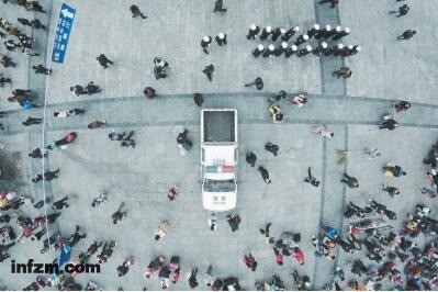 春运期间的广州火车站。广东省公安机关研发了一套名叫视频云的系统,被警方监控的有犯罪 前科、负案在逃人员一旦进入广州火车站,系统 就会自动报警。(南方周末记者❘冯飞❘航拍/图)