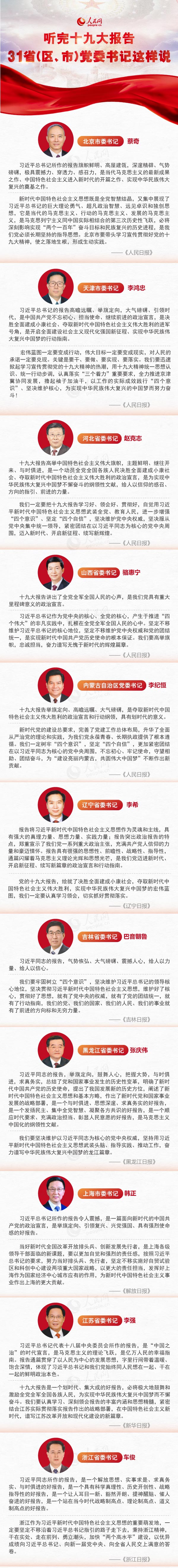 听完十九大报告,31省(区、市)党委书记这样说