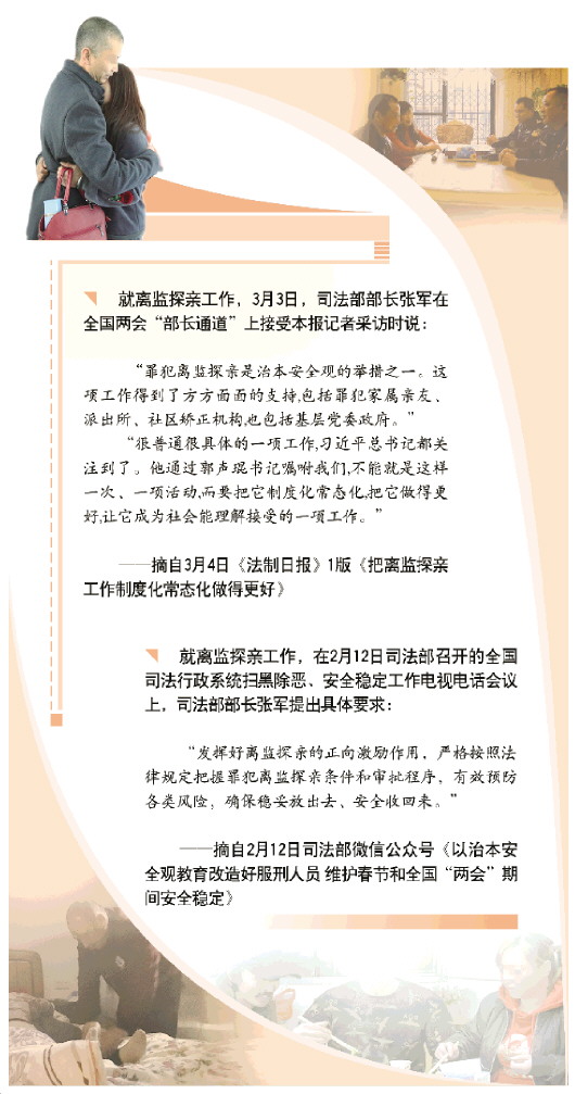 目前,这一举措已初见成效。本报今天推出一组特别报道,展示离监探亲工作在服刑人员、监狱内外以及社会各界中所产生的良好反响。