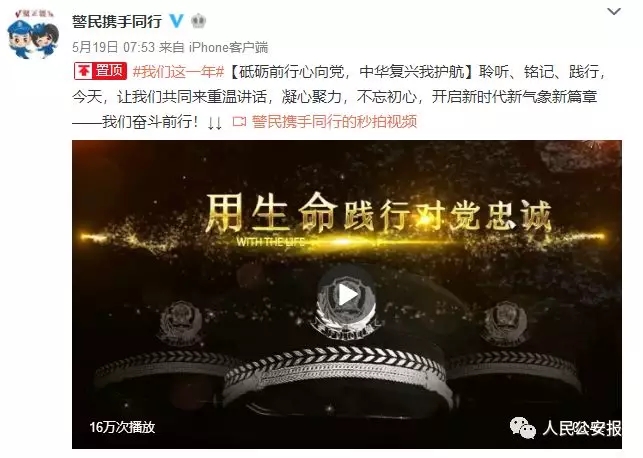 为做好全国公安机关深入学习贯彻习近平总书记“5·19”重要讲话精神的新媒体宣传,5月10日起,公安部宣传局组织全国公安新媒体矩阵联动开展“我们这一年”主题宣传活动。