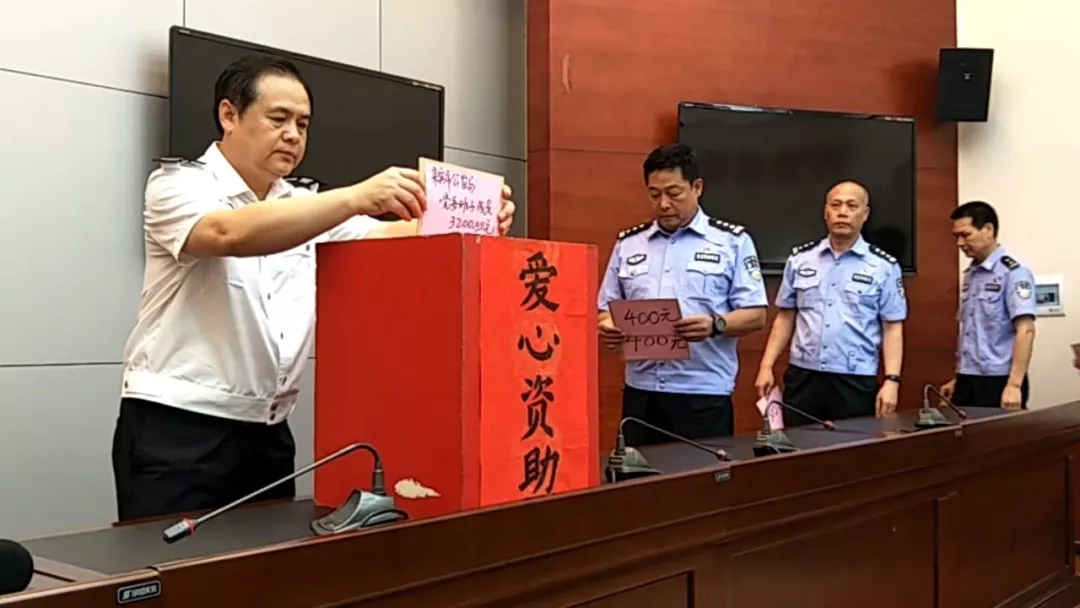 今天上午(6月8日),在来宾市公安局交警支队会议室,来宾公安为“6.7”交通事故受害者遗孤募捐仪式举行。民警纷纷捐款,奉献爱心。