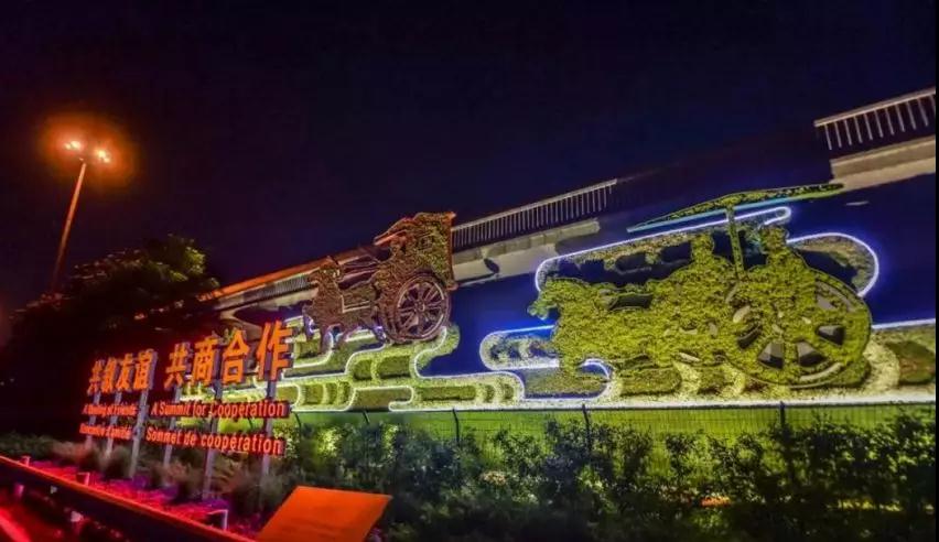 迎接今年最大主场外交,北京夜景开启刷屏模式! 为迎接2018年中非合作论坛北京峰会,全市共设置了9处主题花坛,分别在天安门广场、东单、西单、钓鱼台国宾馆、国家会议中心门前、专机楼前及四元桥。美丽花坛在夜晚灯光的映射下更加璀璨生辉、美轮美奂。(北京日报)