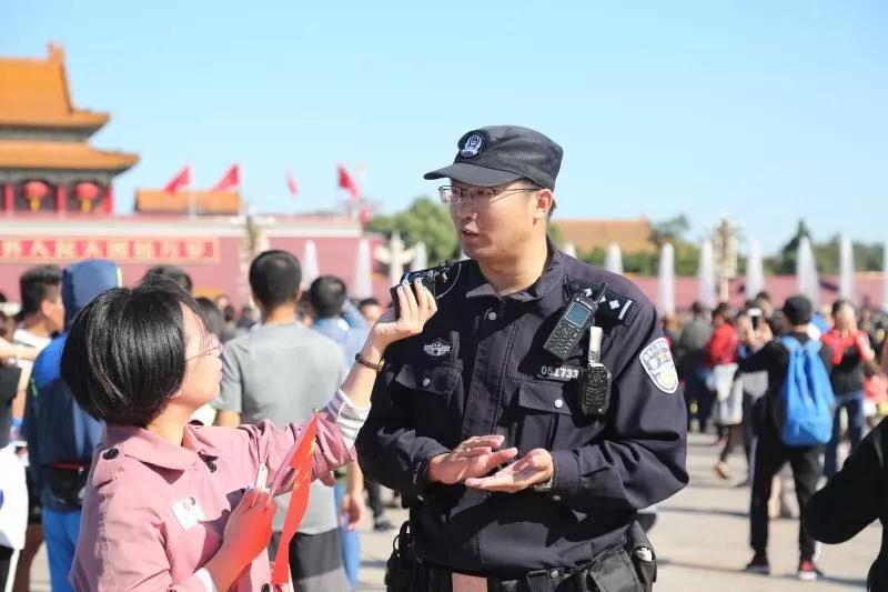 天安门广场中心的巨型国庆花篮直径达50米,八方游客争相合影。但对天安门地区分局巡警一大队政委刘晓猛来说,这些游客才是最重要的“风景”。