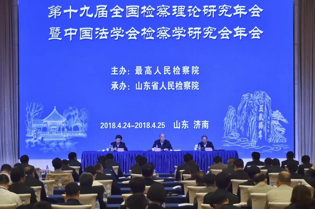 2018年4月24日,第十九届全国检察理论研究年会暨中国法学会检察学研究会年会在济南召开。最高人民检察院党组书记、检察长张军出席会议并讲话。