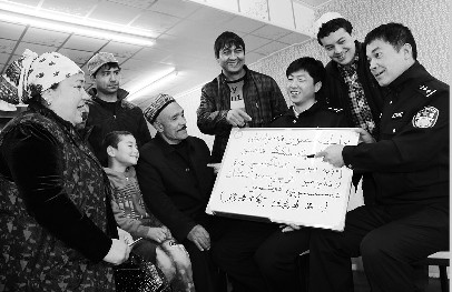 12月4日,在浙江省台州市公安局路桥分局路桥派出所进行工作交流的新疆维吾尔自治区和田县公安局民警,与路桥派出所民警一起,参加分局组织开展的“大走访、大排查、大整治、大建设”活动,在少数民族务工人员中开展法制宣传活动。蒋友亲 摄