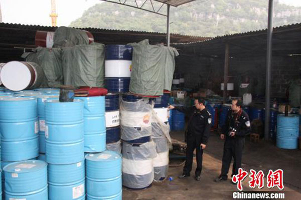 据警方介绍,今年2月初,柳州市公安局经侦支队民警在工作中获悉,该市一家经营润滑油的贸易公司经常到市内的一些废旧回收站收购空油桶,收购的主要是“长城”、“美孚”等名牌润滑油空桶。该情况引起了警方注意,并成立专案组展开立案侦查。