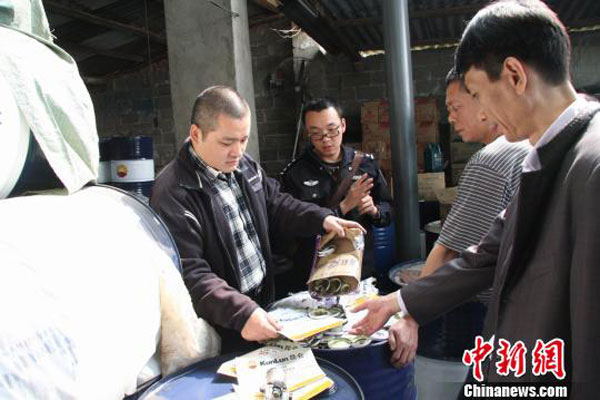 广西柳州市警方3月31日向媒体通报,该市一个家族企业通过收购名牌润滑油空油桶,然后买来低价润滑油注入,以次充好出售获取差价。柳州市公安局经侦支队经过一个多月的侦查,成功破获该起特大涉嫌假冒注册商标案件,抓获4名犯罪嫌疑人,涉案总金额超百万元人民币。