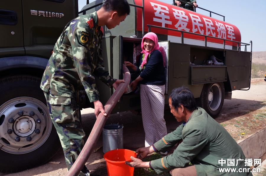 甘肃武警:送水抗旱尽显鱼水深情(中广网发 原志强摄)