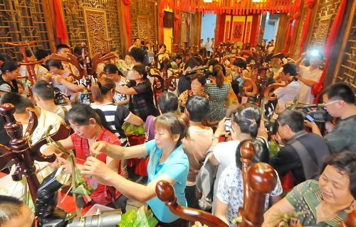 6月10日,福州三坊七巷文儒坊举行“粽香坊巷”包粽子比赛,迎来众多市民参加。新华社记者 林善传 摄