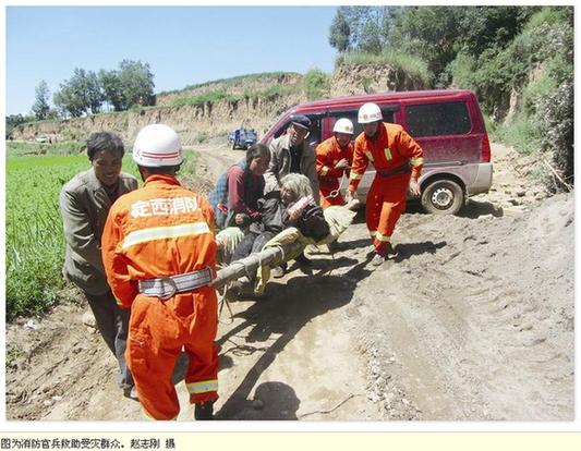 甘肃省定西市岷县、漳县交界发生6.6级地震后,公安部派出由消防局组成的工作组赴地震一线指导抗震救灾工作,同时部署陕西、四川、青海、宁夏等周边公安消防总队和重庆国家陆搜基地地震救援队原地预集结待命。甘肃省公安消防总队迅速行动,紧急调集520名消防官兵全力投入抢险救援。