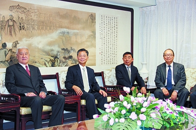 | 咨询委员会原主任祝铭山(左一)、咨询委员会副主任李玉成(右一)在台湾进行考察交流活动。 |