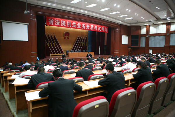 黑龙江省高级人民法院坚持在岗位练兵中提升能力,以“立足岗位、服务办案、全员参与、注重实效”为原则,持之以恒地开展全员岗位大培训、大练兵、大比武活动。12月20日下午,组织了全体干警参加的业务素质考试,根据不同的审判领域、不同的职责任务、不同的能力要求,分为综合、民商、刑事、行政赔偿、执行、法警六个类别。