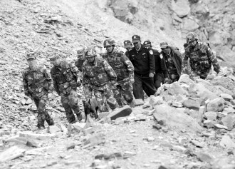 图为吐古买提边防派出所官兵与边防连队官兵联合护边员,在海拔近4000米的博孜艾格尔山口巡逻。(记者 赵戈)