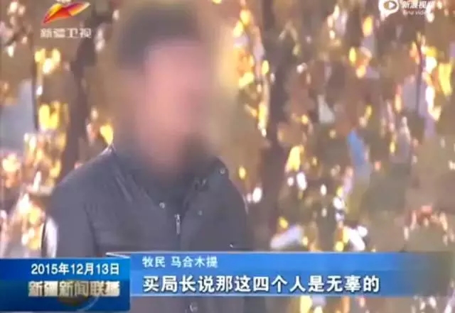 这是新疆卫视《新疆新闻联播》中的牧民马合木提,电视台为了保护他的安全隐去了正面。