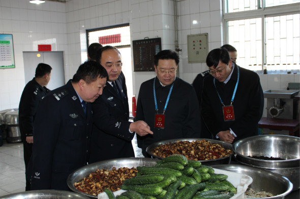 在晋中监狱十二监区,崔厅长详细了解了节日期间服刑人员的伙食安排情况。当看到监内食堂为服刑人员准备了丰富的节日菜品后,崔厅长嘱咐一定要把节日期间的伙食搞好,让服刑人员都能感受到政府的关怀和节日的温暖,增强服刑人员改过自新的思想认识。临行前,崔厅长与快反分队的干警们握手拜年,祝大家阖家幸福安康。