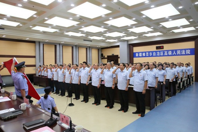 6月28日下午,新疆维吾尔自治区高级法院召开党员大会,热烈庆祝中国共产党成立95周年。庆祝大会由高院党组副书记、院长木太力甫·吾布力主持。