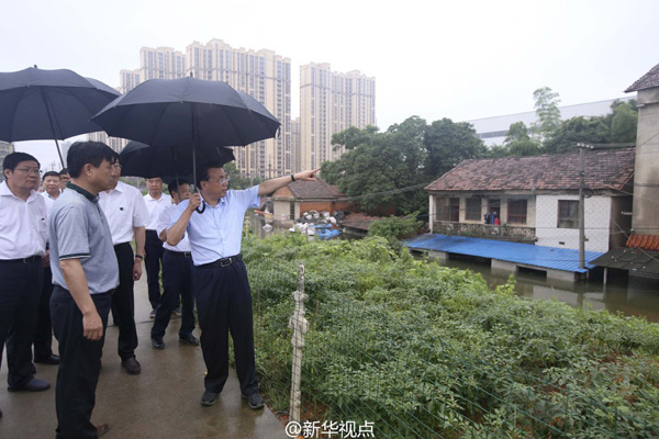 李克强岳阳内涝城中村察看灾情