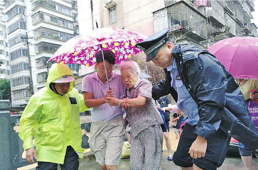 9月15日4时30分,110指挥中心接到群众报警,称在文园路35号有两名老人被积水围困。厦门市公安局应急小分队民警立即赶往现场。经现场排查,民警发现有170多户居民被困在近2米深的积水中。民警紧急联系市公安局指挥部,请求武警协助救援。随后,多名武警官兵携带冲锋舟赶往现场。经过民警和武警官兵的不懈努力,被困人员被分批成功转移至安全地点。