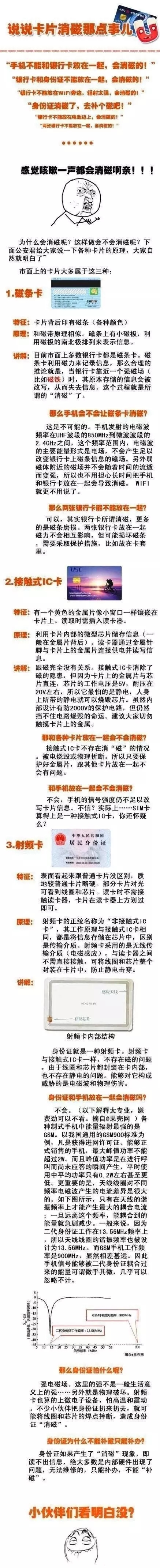 经常听到小伙伴们说:“哎呀,我的身份证消磁了。”身份证“没磁”,意味着到火车站取不了票,到银行取不了款,到民政局“娶不了媳妇”······ 身份证是不是和手机放一起会“消磁”?是不是和公交卡放一起会“消磁”?是不是和wifi离的太近会“消磁”?天哪,会不会我咳嗽一声都会“消磁”?而今天,长安君(微信ID:changan-j)告诉你,其实不是那么回事。啥情况?一起来看看身份证“消磁”那点事儿: