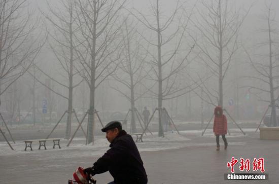 2016年12月31日,天津重度雾霾再现。据中国环保部消息称,北京、天津、石家庄、保定、廊坊、郑州、鹤壁、安阳、济南、德州、聊城等61个城市已启动空气污染天气预警。 中新社记者 佟郁 摄