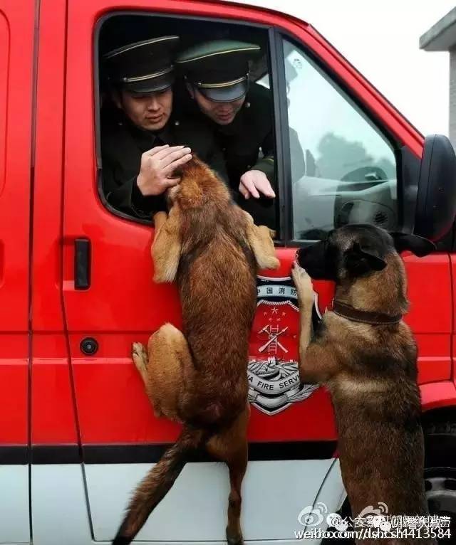 12月3日合肥【战友,就送到这里吧】安徽消防总队合肥支队的警犬小艾和天狼趴在车门边,不舍带了自己几年的战友退伍离去。