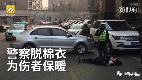 12月17日大连【交警脱棉衣为车祸伤者取暖】大连一女子遭遇车祸,全身多处骨折不能动弹。在等待救护车期间,交警脱掉自己棉衣为伤者取暖。