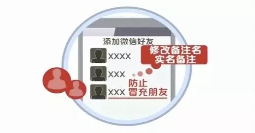 在添加微信好友时点击好友,选择“修改备注名”,进行实名备注,这样就能防止有人冒充朋友。另外,尽量不要注明父母、姐弟、同事等关系,避免被骗子利用。