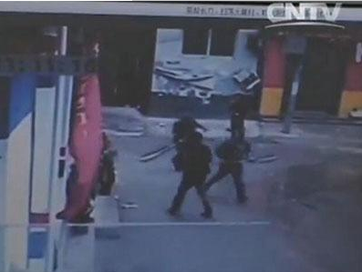 上图是发生在大寨村街头的另外一幕,两个团伙为了争抢赌博地盘,大白天公然手持两米多长的大砍刀在街头追逐械斗,参加械斗的人数达到20多人。