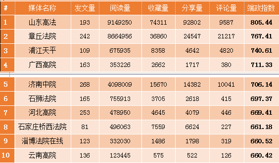 法院头条号榜(2017.3.1-2017.3.31)