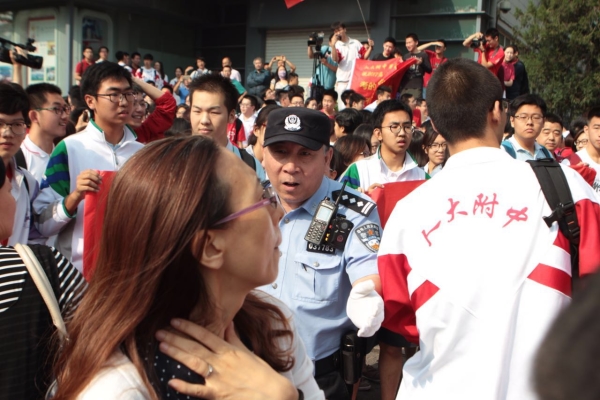今年是他第7年执行高考安保任务,在安保现场,老李不停的穿梭在人群当中维持秩序。