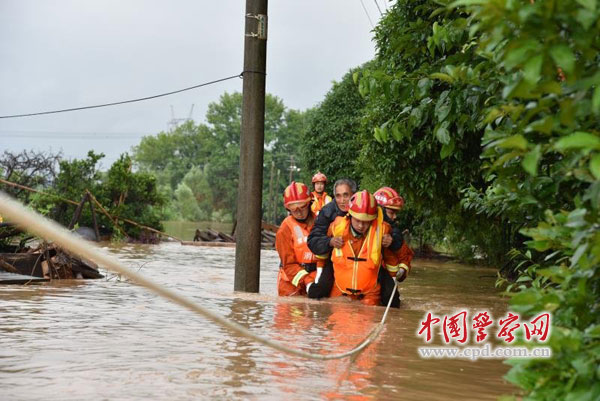中国警察网讯 截至6月24日,湖南省津市市公安局组织150名公安民警和50名武警、消防官兵顶着暴雨,冒险涉水赶赴受暴雨围困的药山镇转移解救妇女、老人和儿童。经过十多个小时奋战,安全转移和救出被水困群众400多人。
