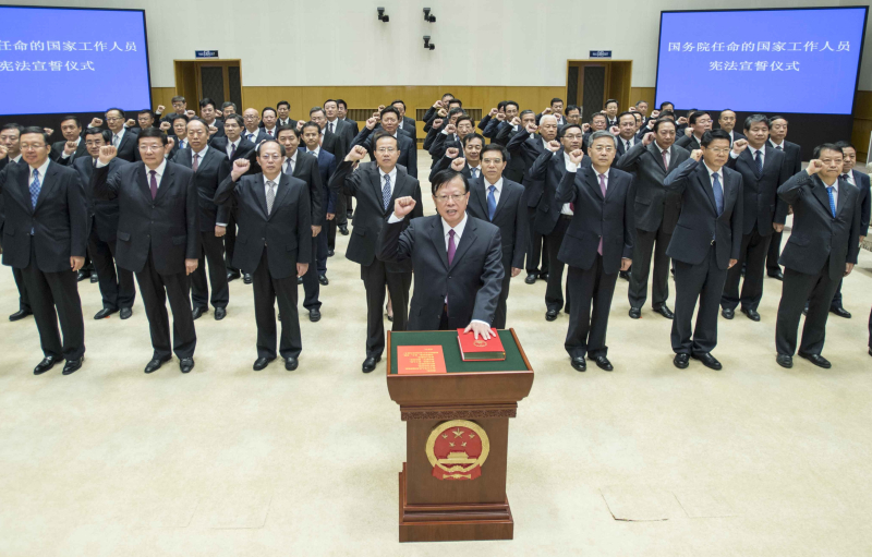 7月3日,国务院在中南海举行宪法宣誓仪式。国务院总理李克强监誓。