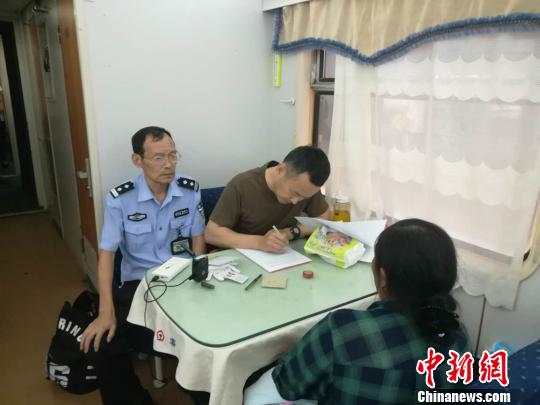 图为列车乘警对涉嫌贩卖婴儿的女乘客进行审查讯问。 苏瑾 摄
