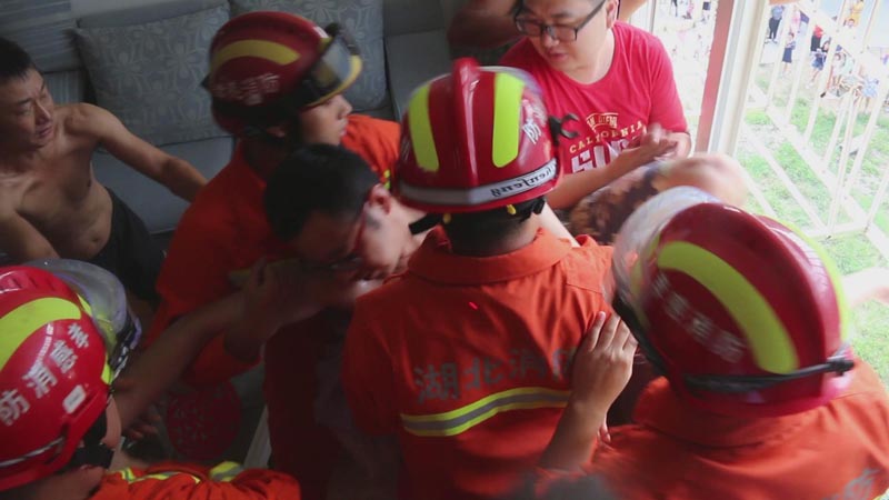 湖北孝感:三岁女童被卡防盗网 男子徒手爬4楼托举半小时